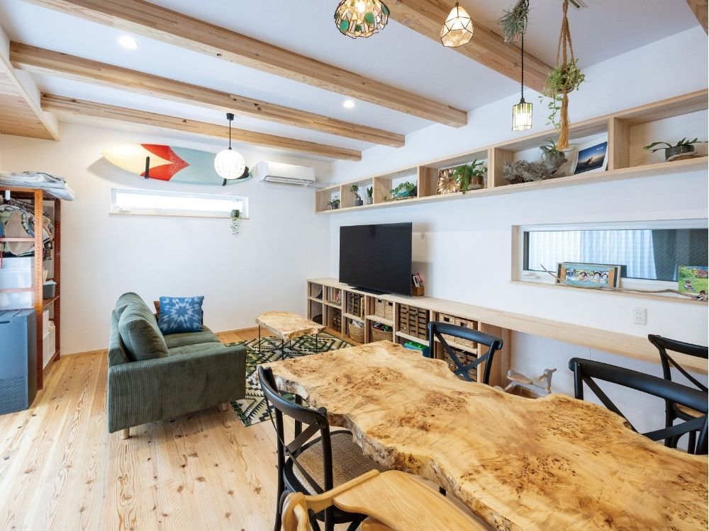 また、十津川の家では、無垢材のぬくもりを活かした造作棚やニッチ(壁のくぼみを利用した飾り棚)など、暮らしを豊かにする「見せる収納」もご提案しています。