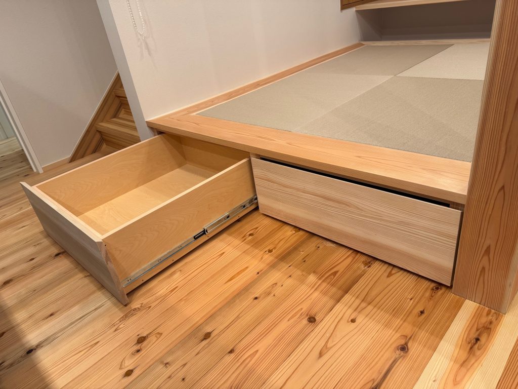 段差があることで床下に収納を設けられ、機能性も高まります。