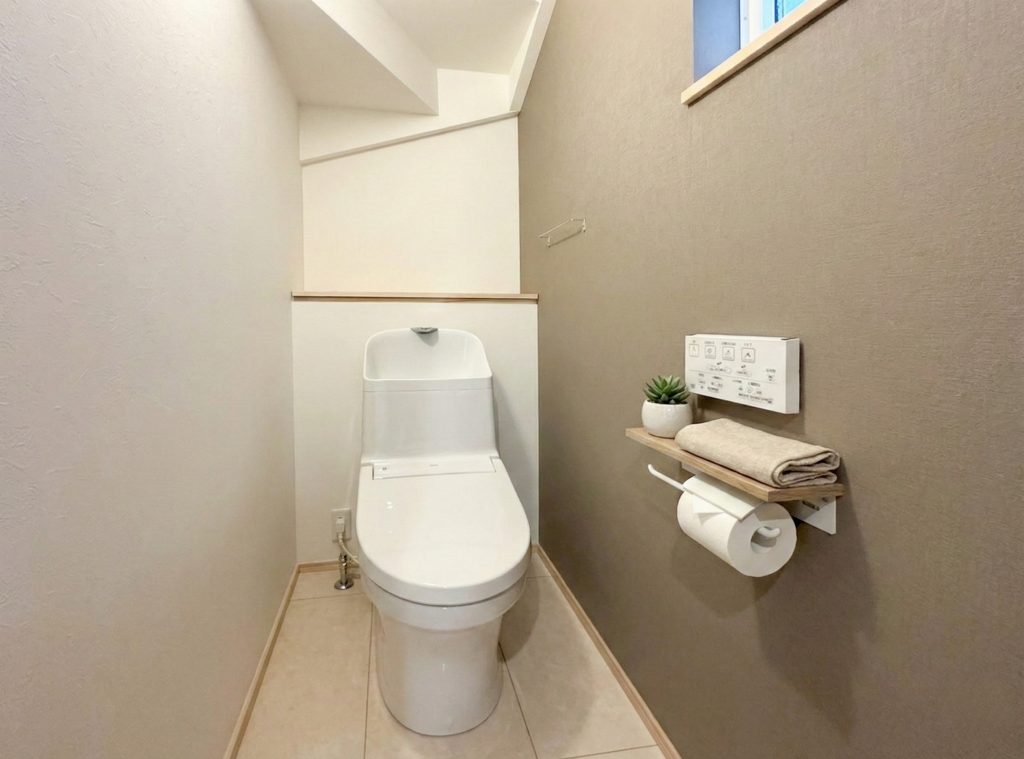 また、階段下のスペースを活かし、トイレの背面に掃除道具などを隠してしまえる収納を設けるなど、適材適所の収納計画も必見です。